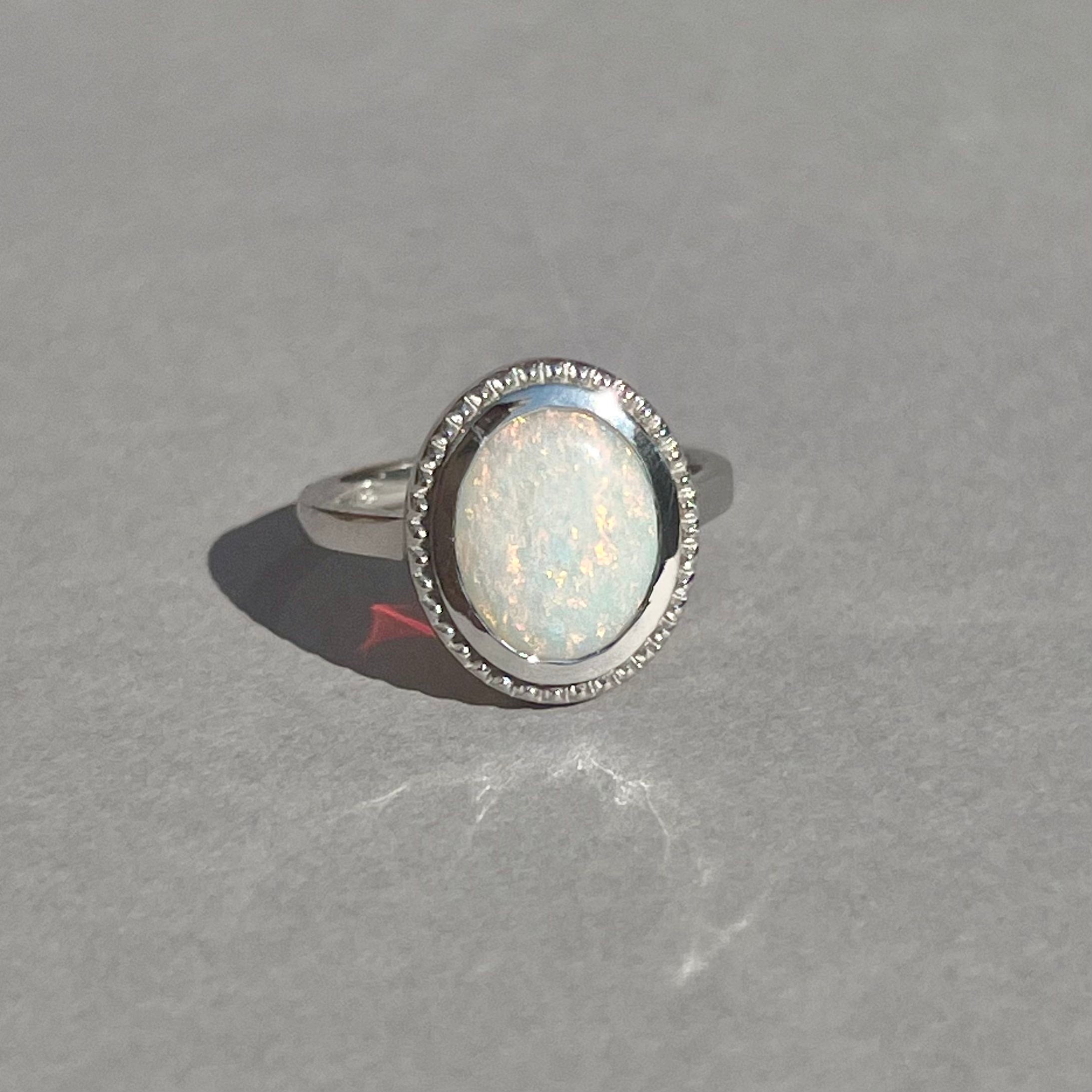 Nicola had alway wanted an Opal ring and she fell in love with a stunning Australian Opal. She reached out to us to create a custom setting for her cherished stone to showcase its natural beauty.